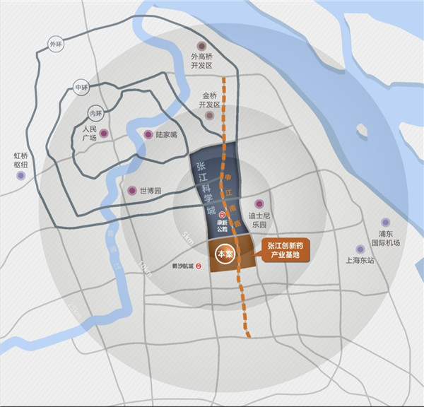 30分钟达浦东机场、上海东站(在建),50分钟达虹桥机场