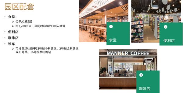 配套:食堂、便利店、咖啡厅、每日上下班班车