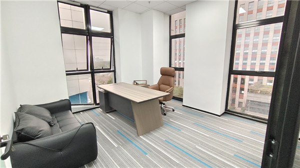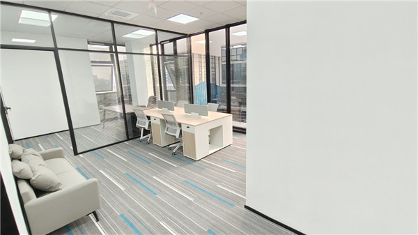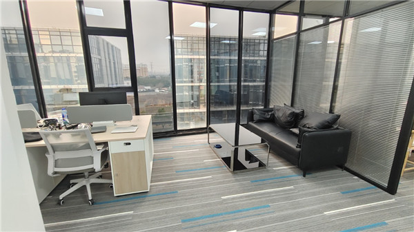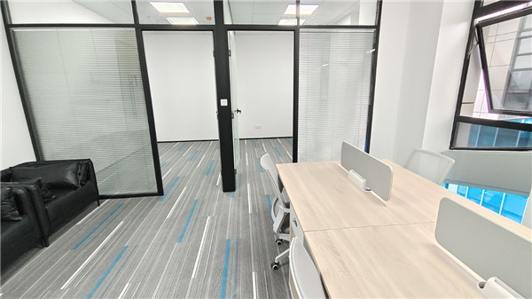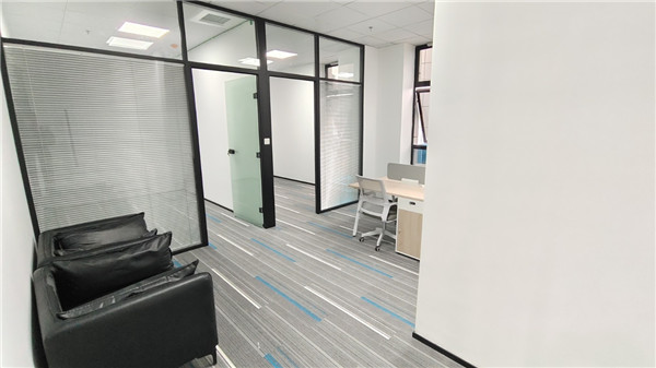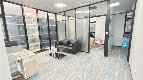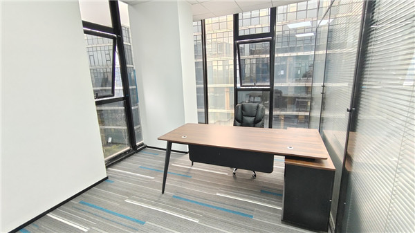 精装修、背景墙、中央空调独立控制、双面玻璃隔断带百叶窗、办公家具一应俱全,即租即用