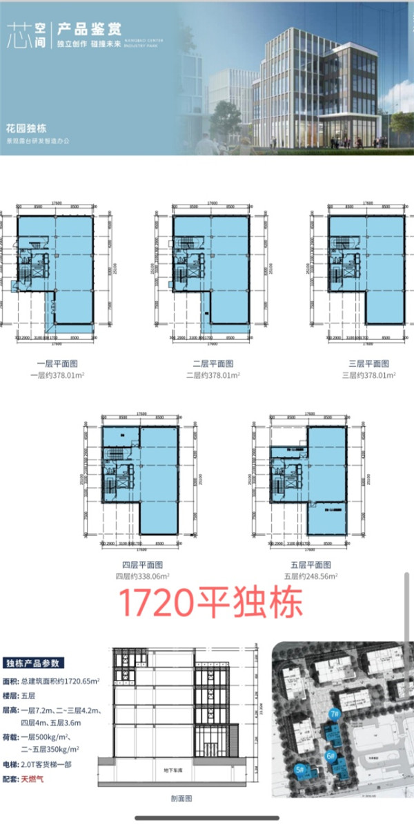 ??面积:1720.65平,独栋5层,单层面积约378平,附赠大露台