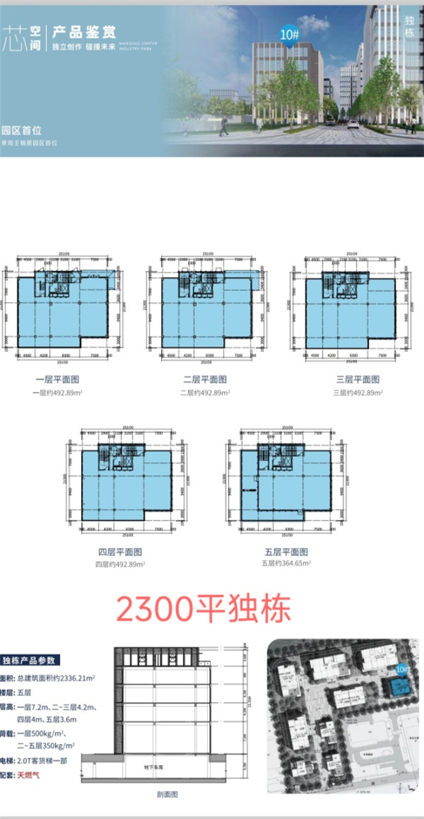??面积:2336.21平,独栋5层,单层面积约490平