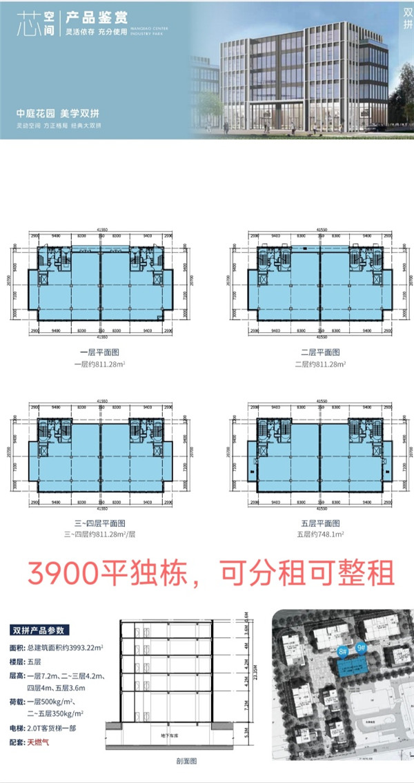 ??面积:3993.22平,独栋5层,单层面积约811平